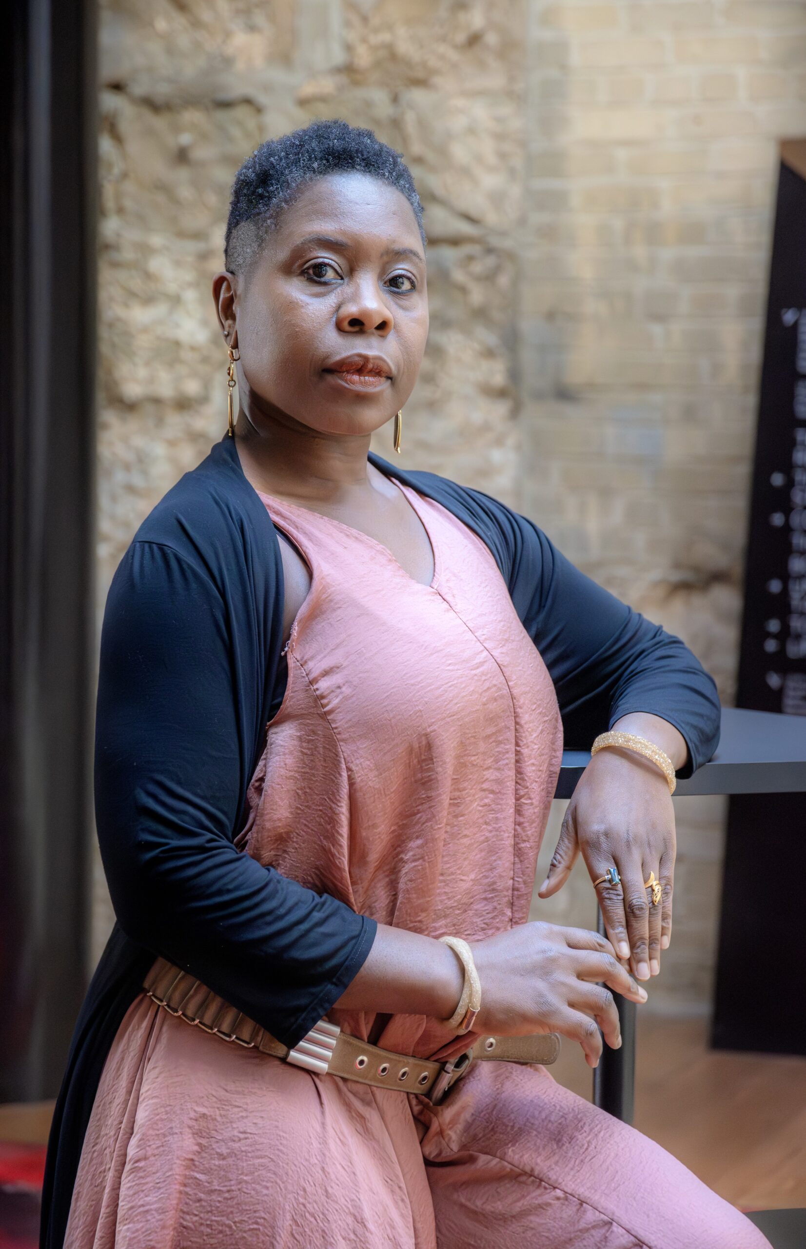 He followed her into dim light, and her flat wooden shoes made a god-awful racket on the stone floor. He’d expected a robed sage, but here she was dressed in hot pants and a tank top. He noticed how her body folded into itself, contours and ravines of skin after skin. Her ash-speckled head was braided in two long-tailed cornrows, and a pearl drop dangled down her nostril instead of her earlobe.